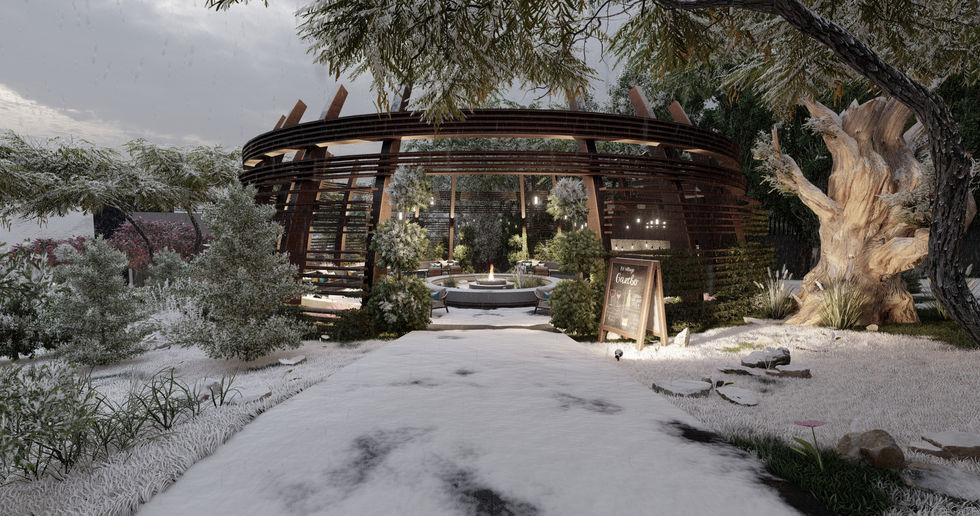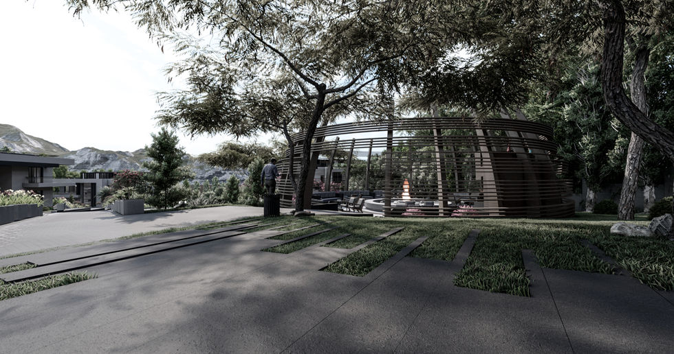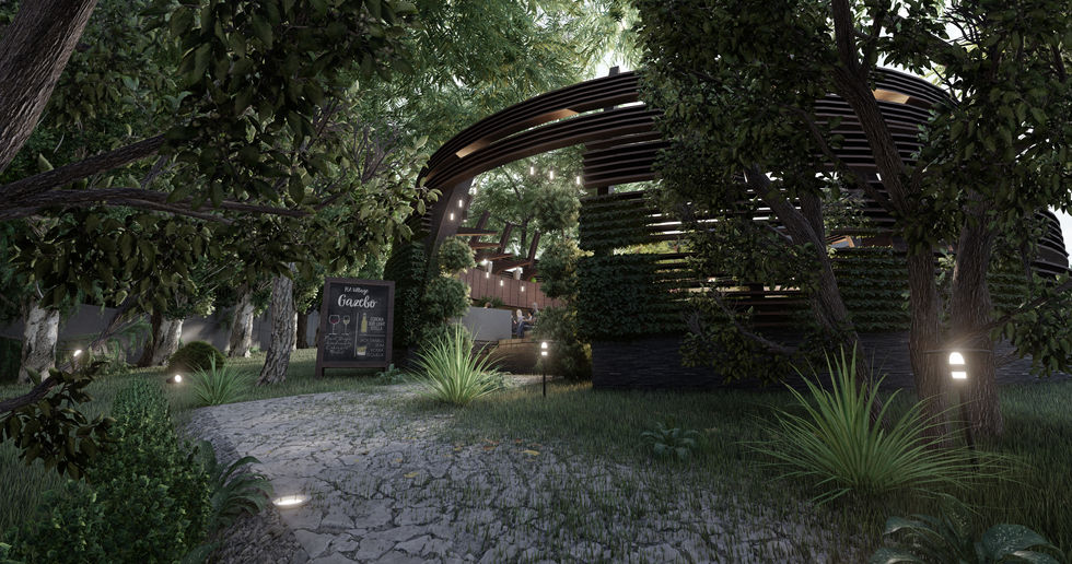 Wood, stone, grass. These 3 materials make up the majority of The Gazebo, and serve to highlight its design that mimics nature.
